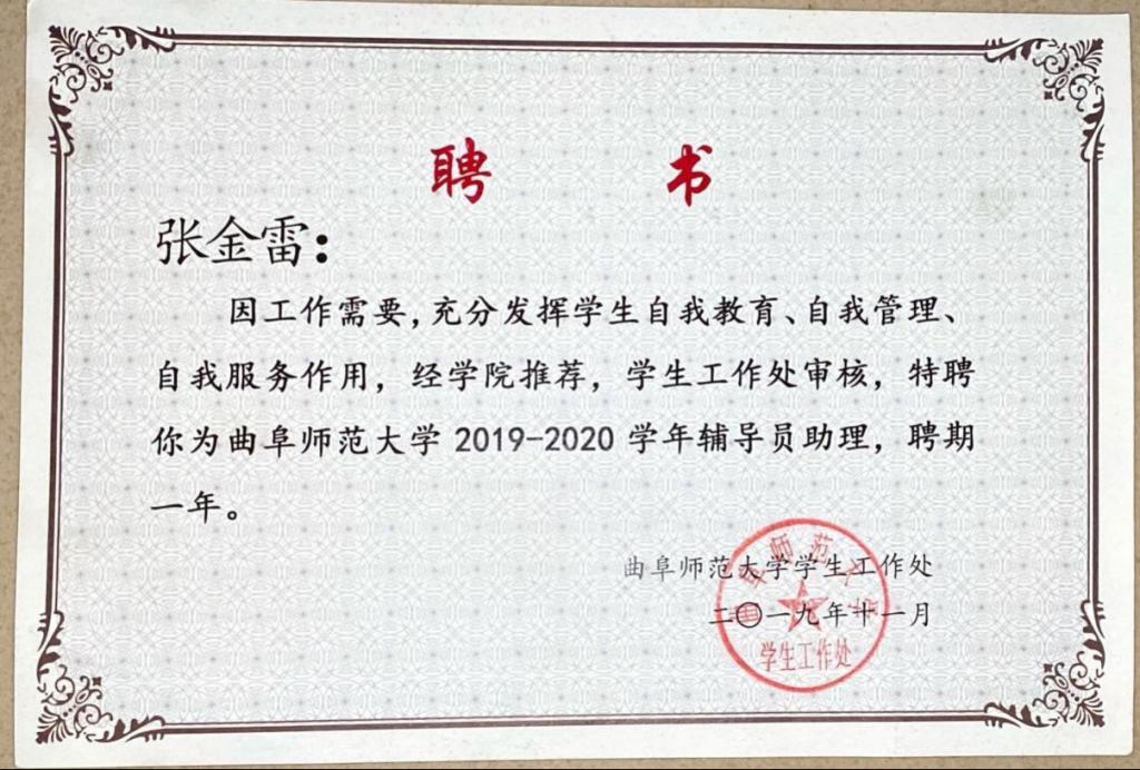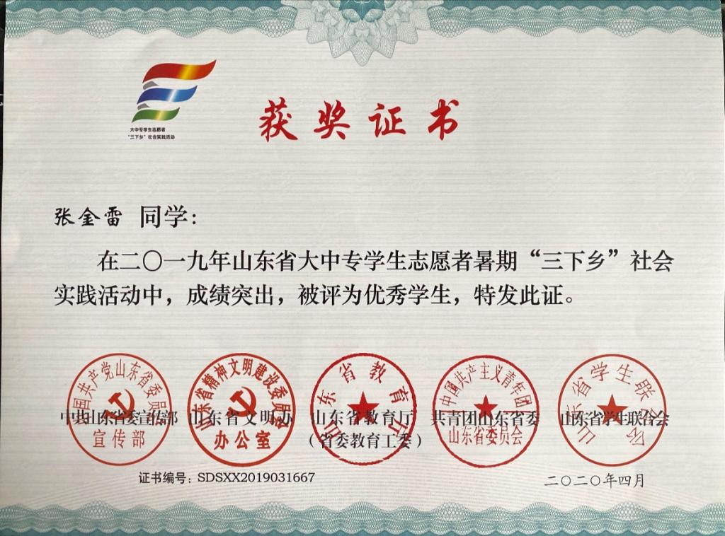 2019-2020学年辅导员助理。曾获2019 年全省大中专学生志愿者暑期“三下乡” 社会实践活动优秀学生,黄金城官网