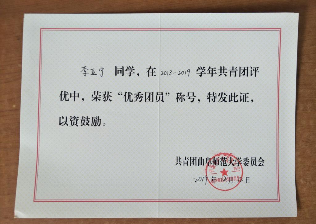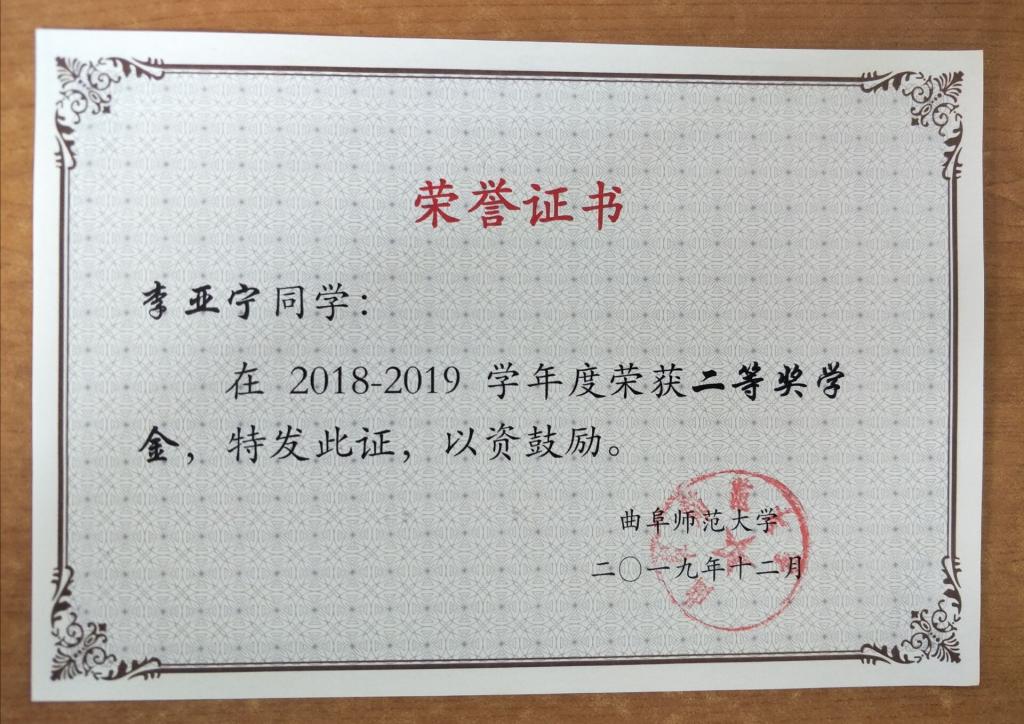 2018—2019年学,优秀团员、二等奖学金