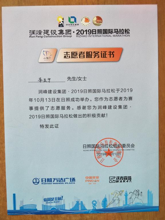 2019.10 日照国际马拉松志愿者