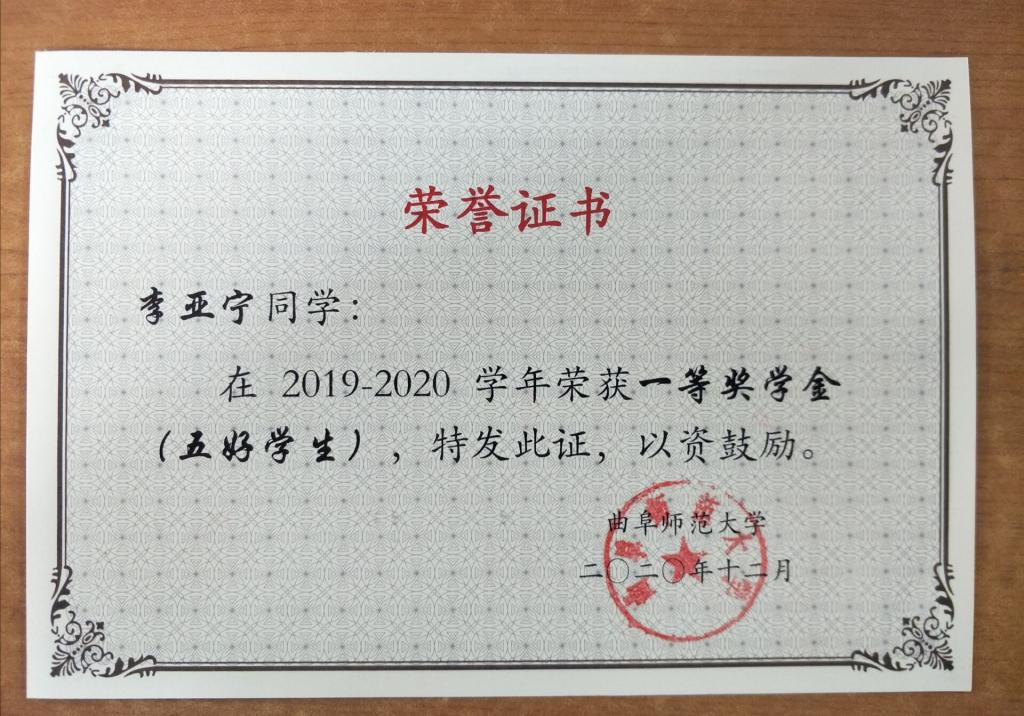 2019—2020年学,一等奖学金