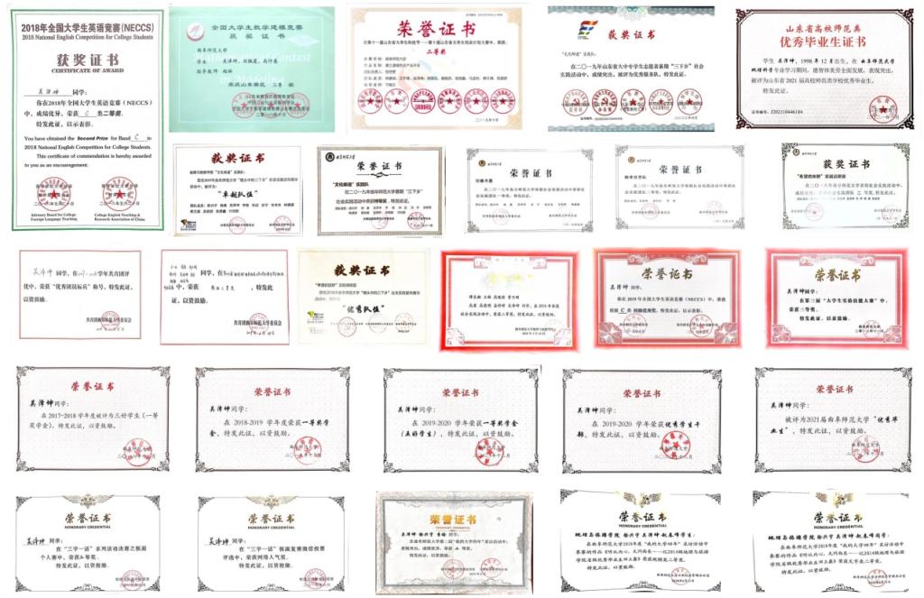 在校取得的荣誉/职位:曾任地理院学生会就业服务部部长,获得山东省优秀毕业生等荣誉