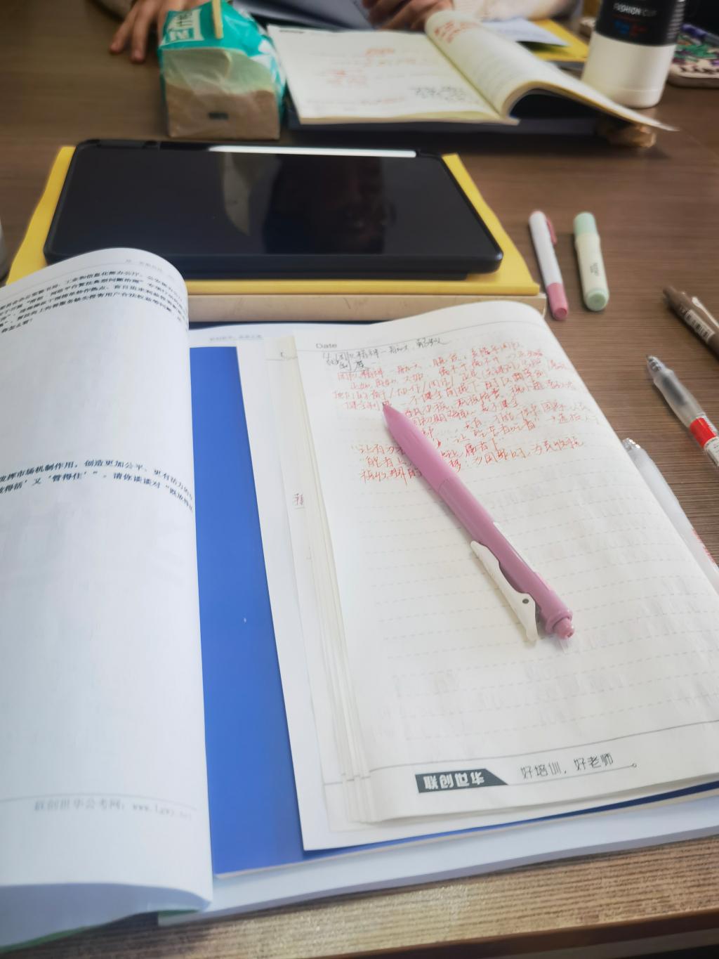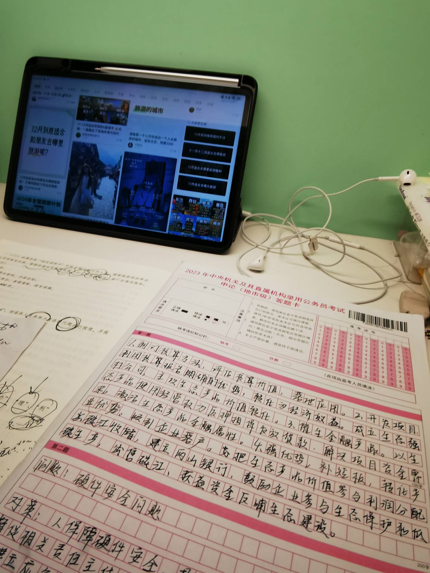我没有报线下班,跟了线上名师的直播课,上午行测下午申论;粉笔5000题新版上市,分模块做,一天大概就是一套题的量;晚上复盘,准备错题本,写好错因;另外读学习强国时评或者申论范文,学习语言表达方法,积累素材。