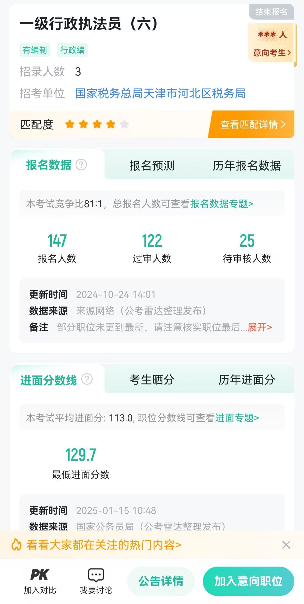 1. 信息获取。像国考、省考、事业单位这类公职人员招录考试都会在官网发布信息且每年发布时间都差不多,可以提前关注国家公务员局官网、灯塔党建在线、各地人事信息考试网,看看往年的招考公告。同时也可以下载“公考雷达”APP,可以查找招考公告,另外也可以在上面看到招考人数、历年分数等等,报名时还可以对比岗位,辅助选岗。