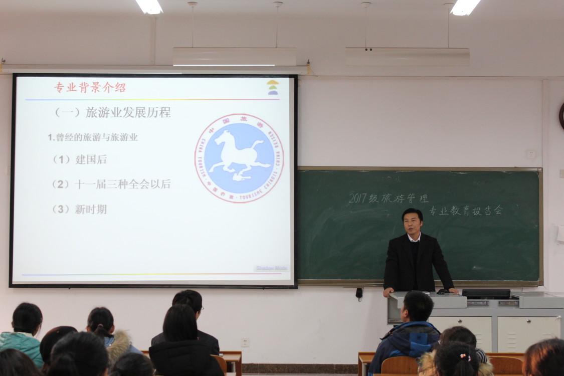 一直致力于培养掌握旅游企业管理和服务的基本知识与技能、从事旅行社、旅游饭店等旅游行业经营管理和接待服务的管理和高级技术应用性专门人才,毕业生未来可在旅游行政管理部门、旅行社、旅游景区、旅游咨询公司、旅游电子 商务企业、旅游规划策划机构、主题公园的旅游经济管理和企业管理工作或旅游与休闲行业的自主创业等方面发展。张全景院长和吴军副院长也进行了补充和说明,他们谈到十九大提出的旅游业相关内容,让同学们了解到国家政策对于旅游业的鼓励与推动,旅游业的发展与我们的专业息息相关。在向同学们介绍黄金城官网