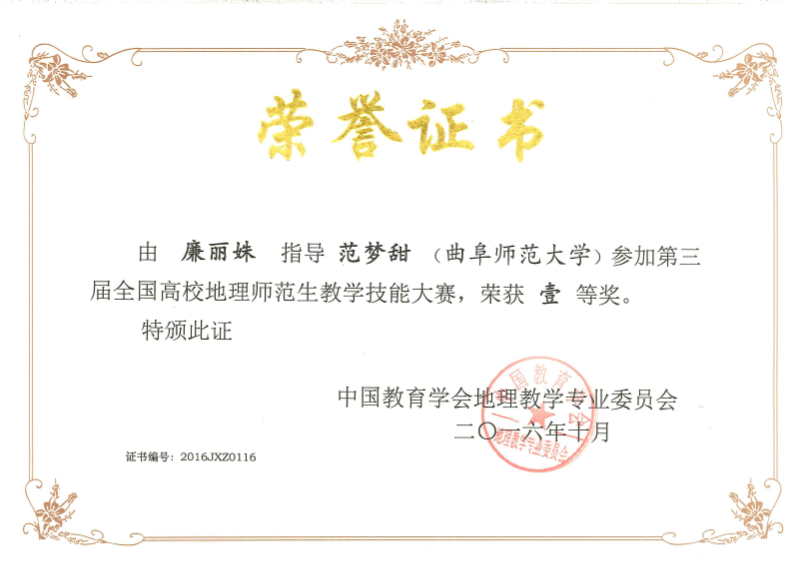 在师范生培养方面的突出成绩。