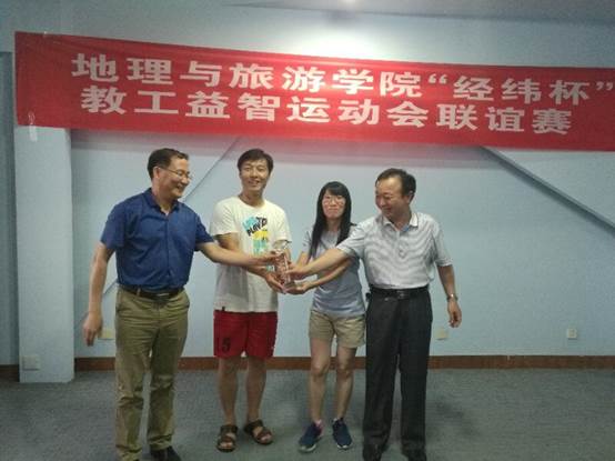 分工会组织的“经纬杯”教工益智运动会联谊赛于2017年7月10日成功举行。联谊赛以象棋、跳棋、五子棋等趣味益智型活动为主。活动过程中,老师们积极参与、集思广益、研精致思、其乐融融。最终旅游教研室凭借出色的表现取得了本次活动一等奖,行政和自然教研室获得了二等奖,人文和区域教研室分别获得优秀组织奖和道德风尚奖。通过本次联谊活动,促进了黄金城官网