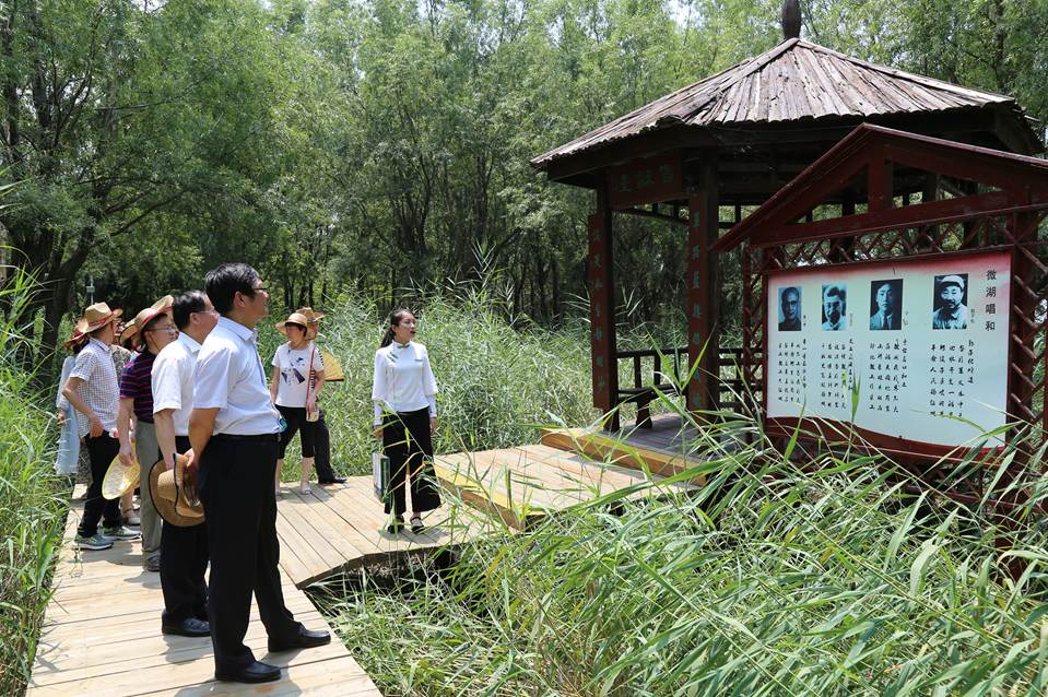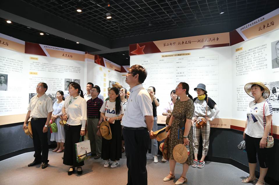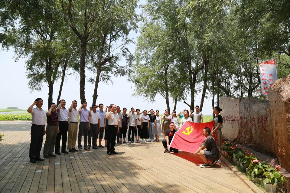 7月1日,全体党员前往山东省委党校教研基地——位于微山湖上的滕州党员干部党性教育基地进开展主题党日现场教学活动。当年,微山湖是山东通向延安的秘密交通线,鲁南的铁道游击队、微湖大队、运河支队等党领导下的地方武装密切配合,给日本侵略者以沉重打击。大家沿着湖心岛上杨柳依依、芦苇夹道的小道,一路瞻仰了护送刘少奇过湖的十柳渡广场、怀念先烈的致敬树和陈毅元帅1943年途径微山湖的咏湖阁,在为纪念铁道游击队第二任政委文立正烈士而修建的千秋亭凭吊革命先烈,随后到达山东党性教育基地——胜利之路展览馆进行现场,大家在讲解员引导下,以“求索之路、抗争之路、护送之路、思想之路、复兴之路”为主线,进行了党史教育和现场教学,使广大党员干部身临其境,领会老一辈无产阶级革命家的坚定信念、奋斗精神、公仆情怀和求实作风。随后,全体党员高举拳头,在基地进行重温入党誓词活动,“我志愿加入中国共产党。。。。。。为共产主义奋斗终身”的铮铮誓言在微山湖上久久回荡。