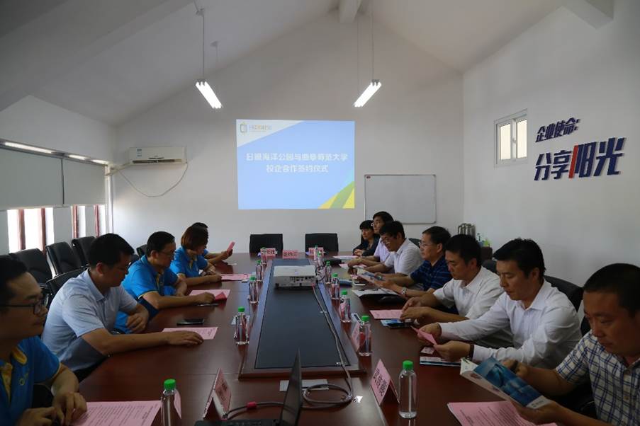 相关情况。张全景与魏立强签署了校企合作协议,共同为实习基地揭牌。校企双方领导表示将在科研、教学教育领域展开广泛合作与深入交流,为实现高校与行业的共同发展提供有效的平台。仪式结束后对日照海洋公园进行参观调研。