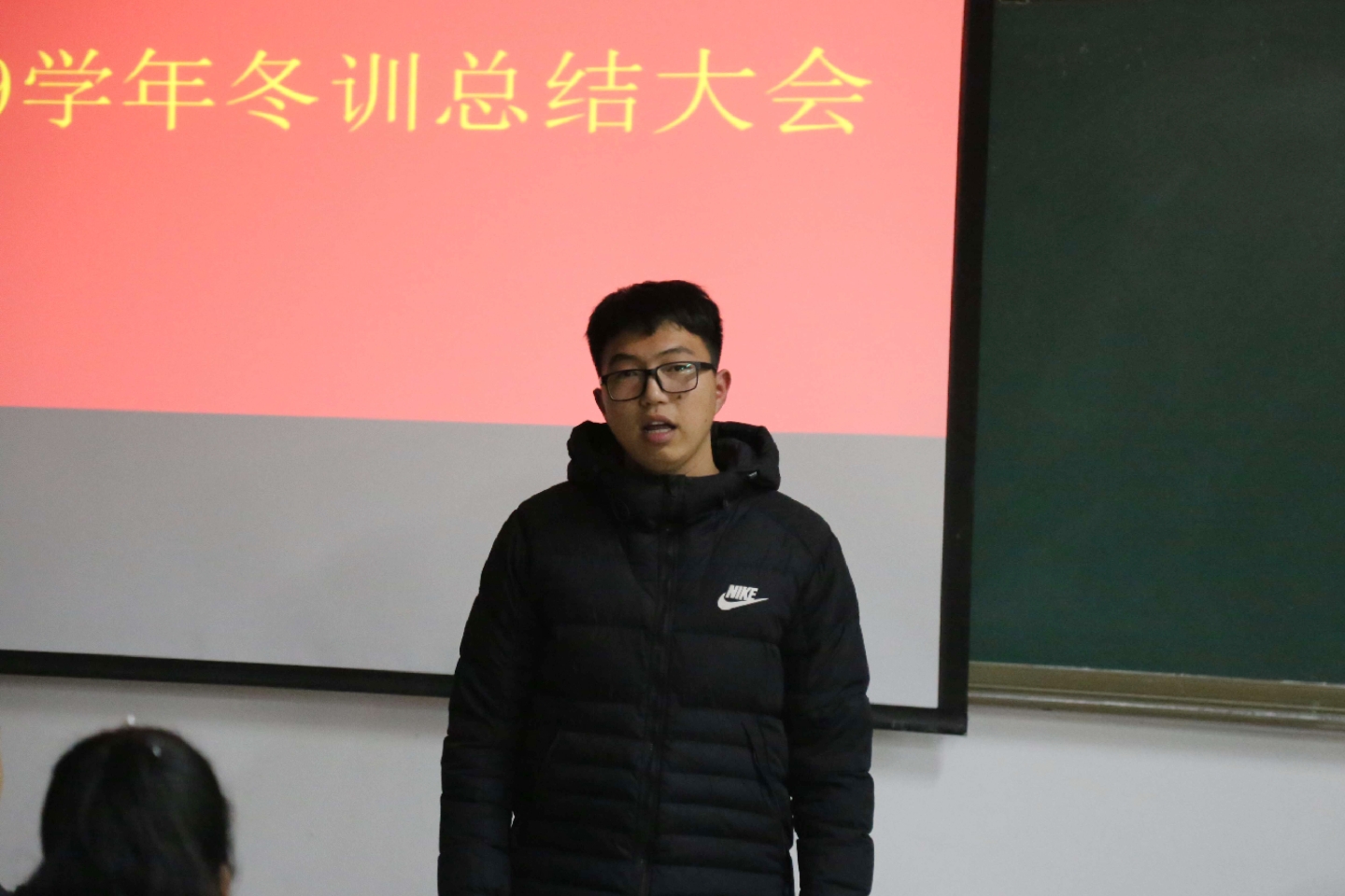 在春季运动会上取得辉煌的成绩。冬训成员李建廷向大家分享他的冬训感想,冬训不仅能够强身健体,还培养了同学们吃苦耐劳的精神,同时,在冬训过程中结识新朋友,收获到珍贵的友谊,丰富了自己的大学生活。最后,综合冬训成员的表现,武新淇、王洪瑞、林俊成等八名同学荣获先进个人奖。
