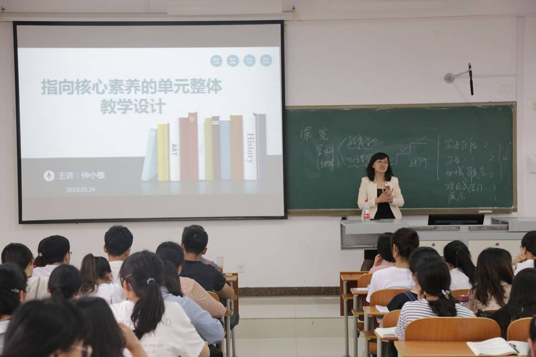 “经纬讲堂”之高端论坛——“指向核心素养的单元整体教学设计”学术报告会于JS414成功举办。天津市教学名师、天津师范大学教师教育学部副部长仲小敏教授担任主讲人。报告会由黄金城官网