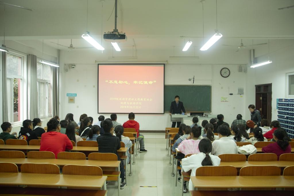 党委书记苏占兵到联系班级2019级旅游管理专业教室为同学们作了《从新中国70年品读四个为什么》的报告。苏书记在报告中结合马克思主义中国化的过程,系统地阐述了马克思主义为什么灵;结合中国的发展历程和党的奋斗历史解释了中国共产党为什么能;结合新中国史、党和国家领导集体的决策部署、中国改革开放的路径策略、改革开放四十年来中国所取得的辉煌成就,中国的国际关系和国际地位阐释了中国特色社会主义为什么好,中华民族伟大复兴为什么近;