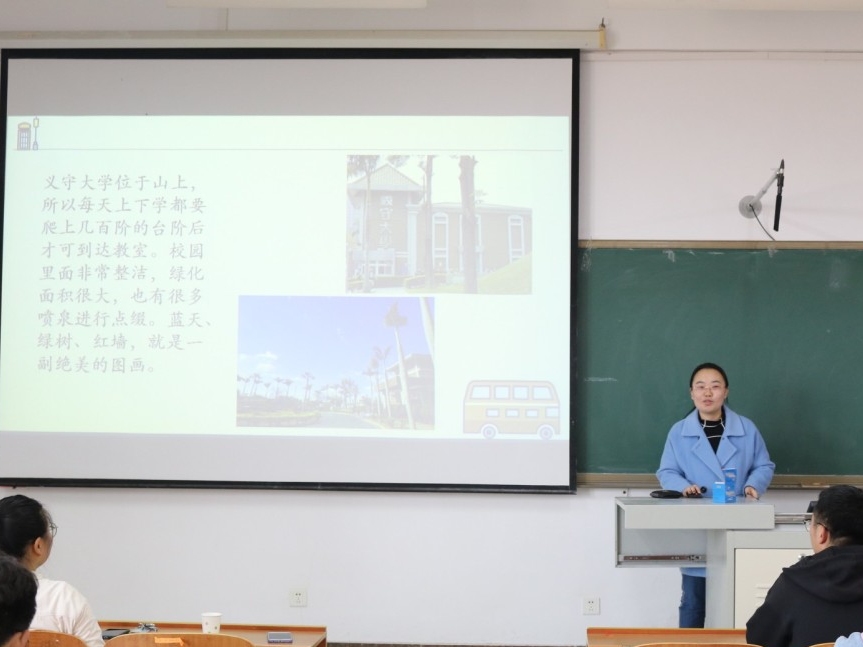 团委学生会国际交流部干事叶乃幸主持,2017级赴台湾义守大学学生代表渠兴勤、孙晨玥担任主讲人,2020级部分同学参加。