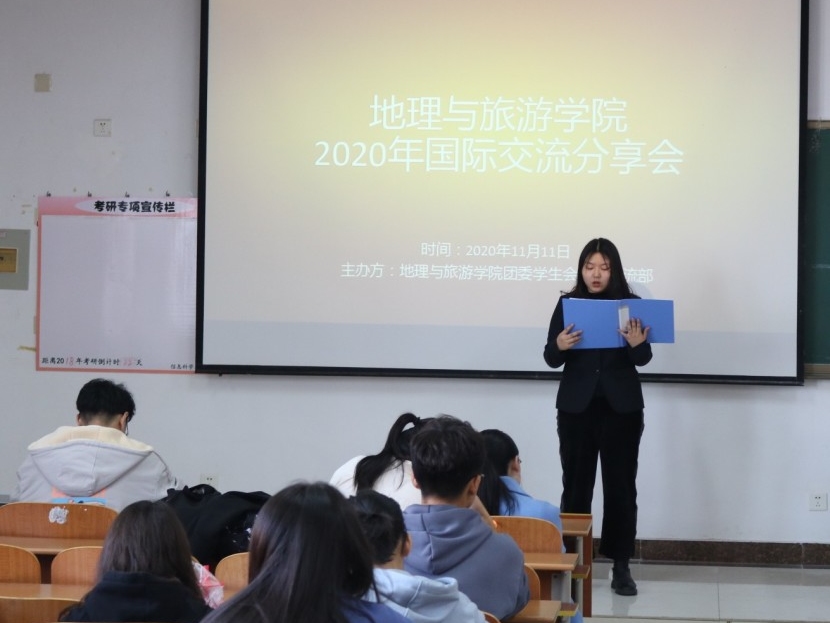 文体活动等方面详细介绍自己在台湾学习的经历和感受,孙晨玥则从台湾高校宿舍环境、校园风光、学术之风以及注意事项等方面进行分享,全方位多角度的为同学们展示自己在台湾求学的经历。随后,国际交流部副部长高亚从实习内容、当地风俗、景点调研等方面着重向同学们详细介绍赴美带薪实习项目,向同学们普及美国加州大学伯克利分校春季学期线上学分交流项目、2021寒假国际名校在线学术项目等国际交流项目。最后,她谈到,国际交流项目是丰富同学们的专业知识,开拓眼界的重要方式,希望大家足够重视,主动了解,积极参与。