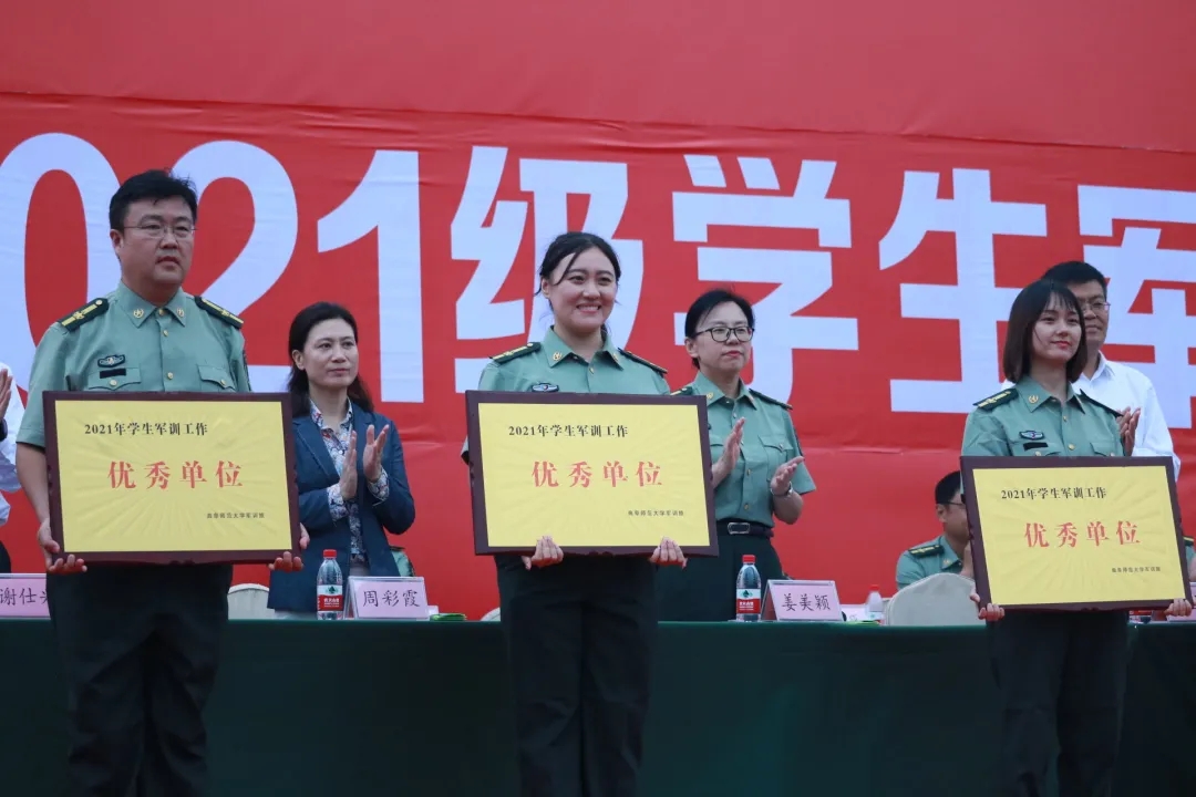 2021级新生军训汇演暨总结表彰大会在西操场隆重举行。地理学子获大满贯。