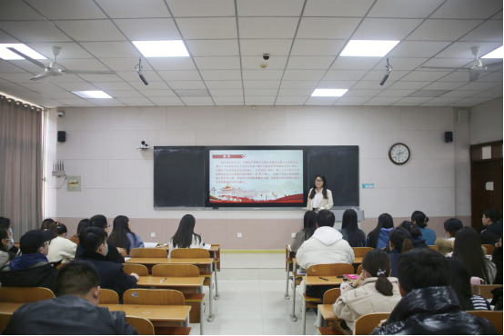 研究生马鑫蓓于JS213教室举行学习贯彻党的十九届六中全会精神宣讲活动。研究生辅导员赵岩、研究生党员和入党积极分子听取了报告。
