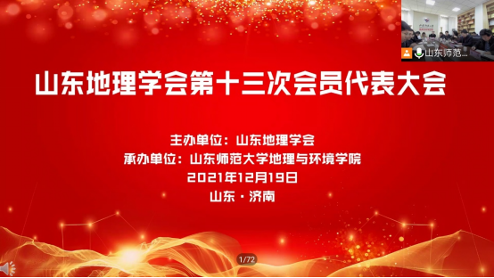 2021年12月19日,山东地理学会第十三次会员代表大会通过线下线上相结合的方式顺利召开。黄金城官网 教师代表张全景、代合治、吴军、于伟、李宝富、刘志刚、贺山峰、周维国、孙丕苓、陈艳锋、徐凯、刘庆果参加了会议。