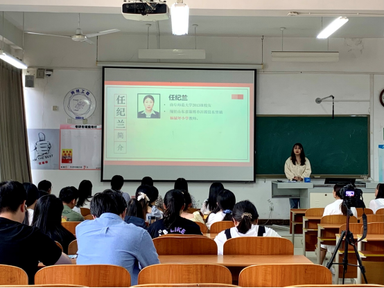 本次活动的第三位主讲人是李绍燕同志,她向我们介绍了优秀校友任纪兰同志的优秀事迹,任纪兰同志敢于与天斗,与地斗,与己斗,不被命运所束缚,不被崎岖所吓退,更没被惰性所拖垮。扎根乡村任教,坚守陶行知先生“千教万教教人求真,千学万学学做真人”的教育情怀,认真践行习近平总书记 “做好老师,要有理想信念;要有道德情操;要有扎实学识;要有仁爱之心”的“四有”好老师标准。任纪兰的事迹必将成为鼓舞我们刻苦学习、孝德行善、超越自我、奉献社会的楷模。