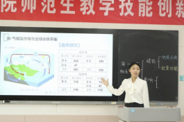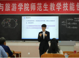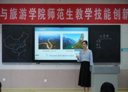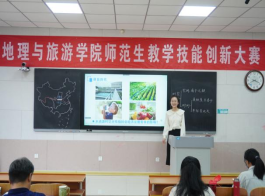 比赛设置高中组和初中组两个组别,包括固定题目模拟授课、答辩和钢笔字考查三个环节,综合考查地理师范生教学技能。比赛过程中,42名地理师范生通过模拟授课和现场抽题作答进行激烈角逐。模拟授课环节,参赛选手以别出心裁的教学设计、丰富多样的教学方法,展现出较强的教学能力;现场抽题作答环节,参赛选手沉着冷静,情真意切作答,展现出良好的个人素质。