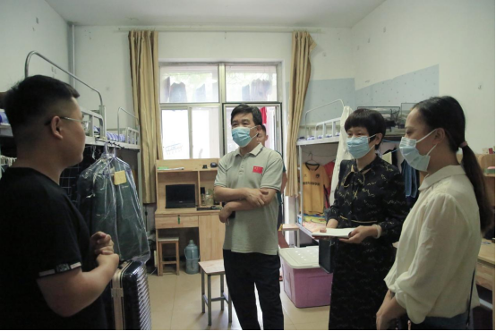 党委书记苏占兵、副院长于伟、研究生辅导员赵岩、研究生教学秘书朱丽走访学生宿舍,了解学生返校情况,关怀学生的住宿安全、人身安全,并进一步落实学生安全管理工作。
