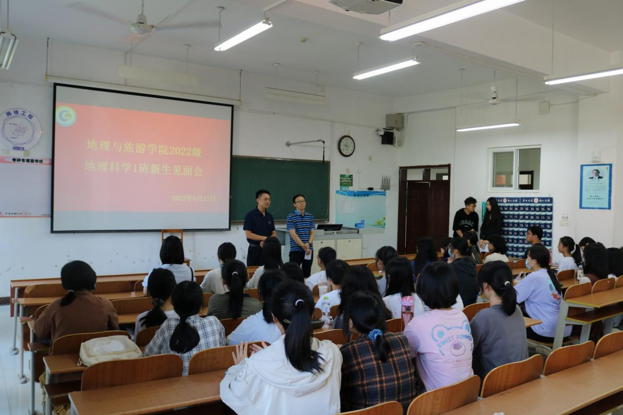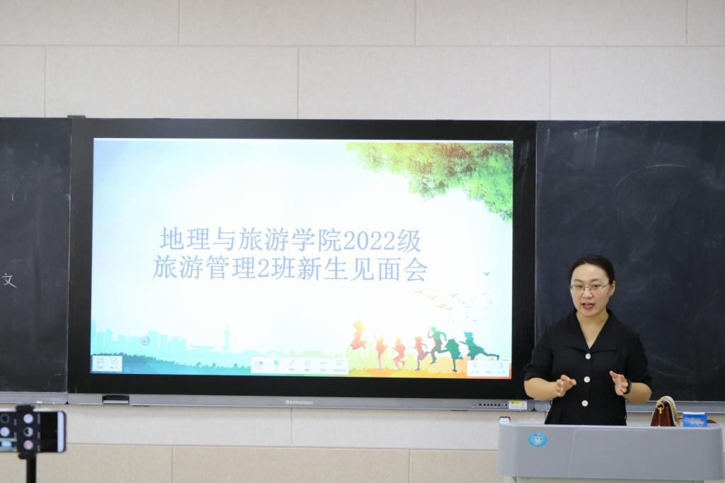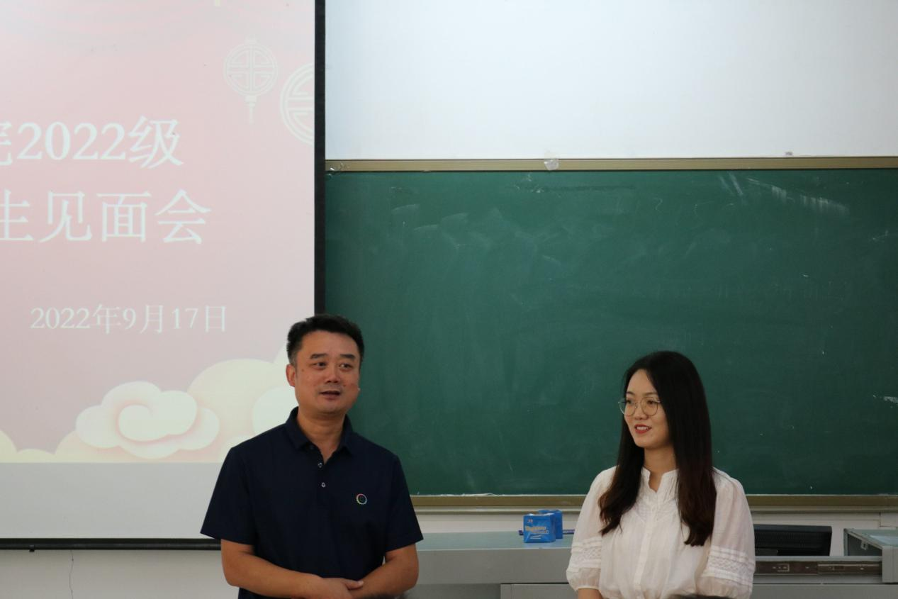 等,希望同学们在学习和学术方面多向班主任请教,在生活方面多和辅导员沟通,同学之间要多加交流,建立良好的关系,度过美好的大学生活。会上,各位班主任与同学们在融洽欢快的氛围中依次进行自我介绍,部分同学进行了才艺表演。因疫情无法线下报到的同学采取线上直播的方式参与本次见面会。见面会结束后,各班在班代的组织下进行游园活动。各班辅导员助理向新生详细介绍校园环境和路线。