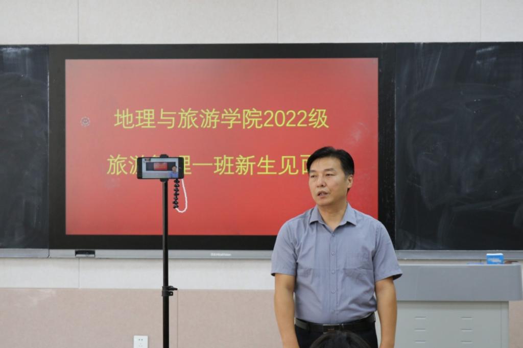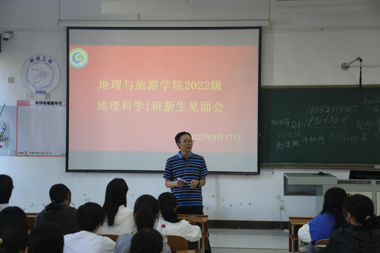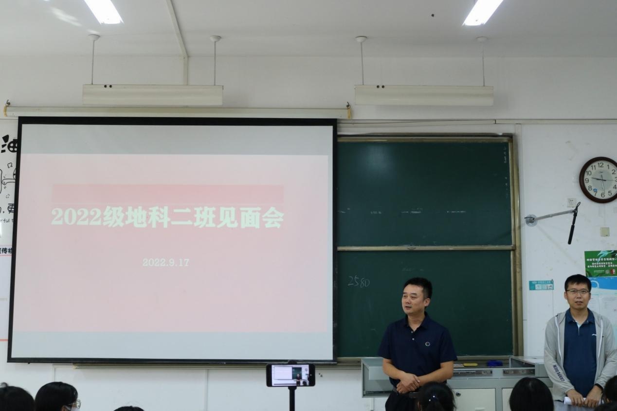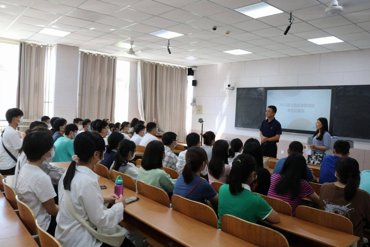 等,希望同学们在学习和学术方面多向班主任请教,在生活方面多和辅导员沟通,同学之间要多加交流,建立良好的关系,度过美好的大学生活。会上,各位班主任与同学们在融洽欢快的氛围中依次进行自我介绍,部分同学进行了才艺表演。因疫情无法线下报到的同学采取线上直播的方式参与本次见面会。见面会结束后,各班在班代的组织下进行游园活动。各班辅导员助理向新生详细介绍校园环境和路线。