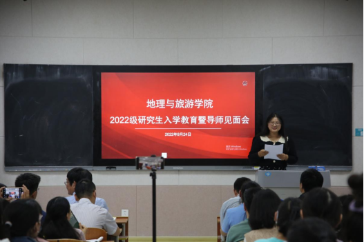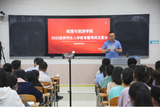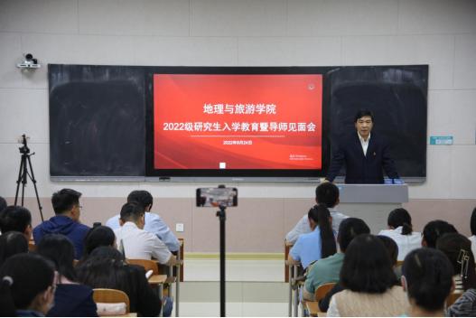 基本概况、专业划分、课程学习、论文写作等重要内容,并对同学们未来的学习生活提出要求。他指出,全体研究生在学期间一定要明确学习目标,做好研究规划,培养从事实际工作的能力,并为进一步的学术研究打好基础。他强调,全体研究生要树立自学意识、能力意识、创新意识、纪律意识及科学的情感、态度、价值观,端正学习态度,培养创新思维,自觉锻炼科研能力。他希望每位同学都能够成长为具有君子风范、家国情怀、乐学精神的优秀地理学者和地理教育工作者。