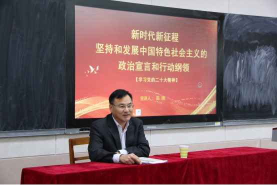 12月4日,党委常委、副校长陈刚以《坚持和发展中国特色社会主义的政治宣言和行动纲领》为题,为黄金城官网