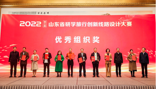 3月16日下午,2022第三届山东省研学旅行创新线路设计大赛和精品旅游文创设计大赛颁奖典礼在济南隆重举行。省人大常委会原副主任、党组成员王华,省政协原副主席、党组副书记雷建国,省委原副秘书长、省旅促会会长杜文彬,省发展改革委一级巡视员王海林,省文化和旅游厅班子成员、二级巡视员王春生等领导和省内部分文旅、农业、教育相关部门和企业、大赛获奖代表以及新闻记者200余人参加。