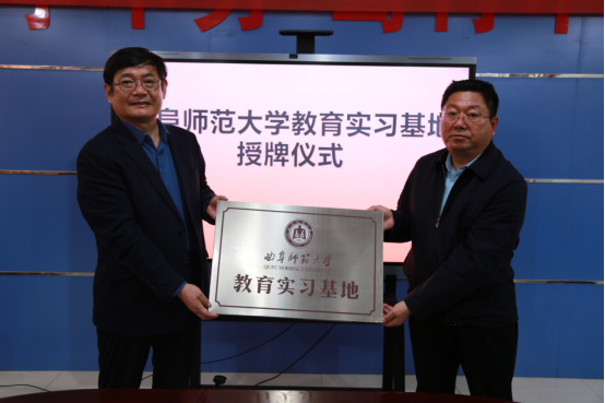 张全景院长和郑义校长签署了教育实习基地协议书,并举行了教育实习基地授牌仪式。教育实习基地协议书的签订标志着双方将进一步开展全方位的深入合作。