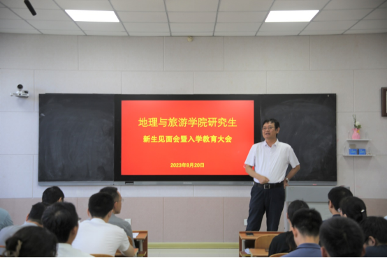 院训“立地弘文,友爱竞争”,号召同学们要立足地理、立在祖国的大地上、把科研脚踏实地地写在祖国的大地上,弘扬真理、发扬知识、服务社会。同时,他要求同学们要具备良性竞争的意识,既要互帮互助、团结友爱,又要相互激励、产出成果;研究生任务之五是健康,张院长提醒同学们要加强体育锻炼,关注身体健康。最后,他寄语同学们能够顺利、圆满地完成研究生三年学业,学有所得、学有所成。