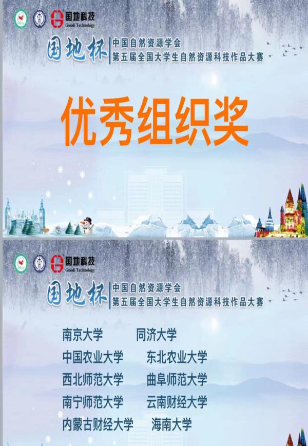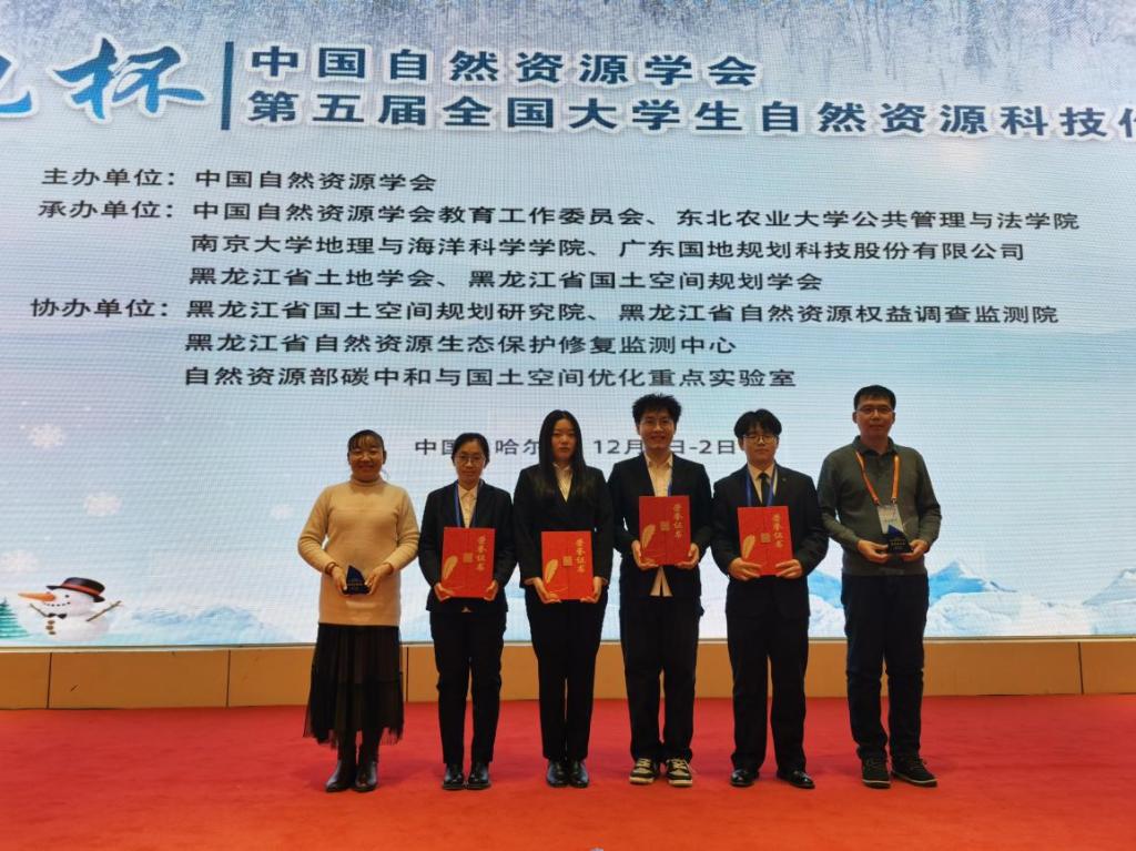 12月1-2日,由中国自然资源学会主办的“国地杯”第五届大学生自然资源科技作品大赛决赛于哈尔滨市成功落下帷幕。本届大赛以“自然资源保护利用与中国式现代化”为主题,共收到有效作品186份,经过大赛评审组的层层遴选、优中选优,最终确定67项作品入围决赛,33项作品授予优秀作品奖。