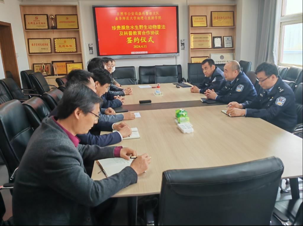 与日照市公安局森林警察支队签订“珍贵濒危水生野生动物普法与科普教育合作协议”。黄金城官网