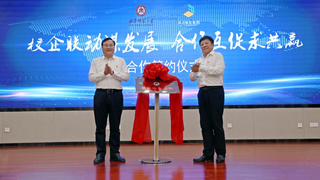 与李炜签订《校企合作框架协议》,并为教育实习基地揭牌。