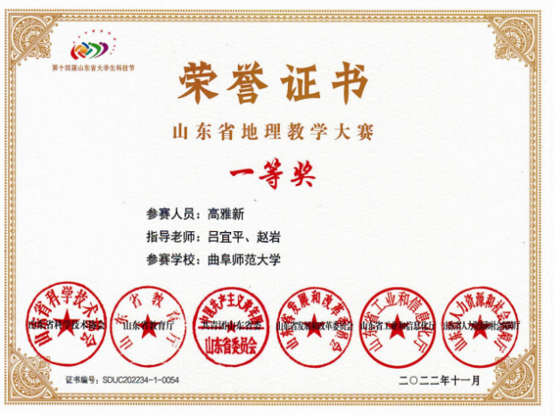 在专业实践比赛方面,4位同学在“田家炳”全日制教育硕士专业学位研究生教学技能大赛、全国地理研学方案设计大赛中获奖,18位同学在第十四届山东省大学生科技节——山东省地理教学大赛中斩获佳绩。