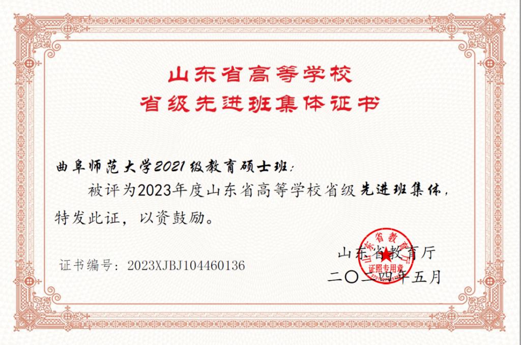 2021级教育硕士班共有46人,自2021年入学以来,该班同学围绕班级建设目标,秉承“学而不厌,诲人不倦”校训,汲取“儒风海韵”传统和现代文化精髓,不断强化政治素质和道德情操,努力涵养专业核心素养,树立正确的人生观、价值观、世界观。为实现自己的梦想和价值,锲而不舍,勇毅前行,在各方面都取得了较好成绩。