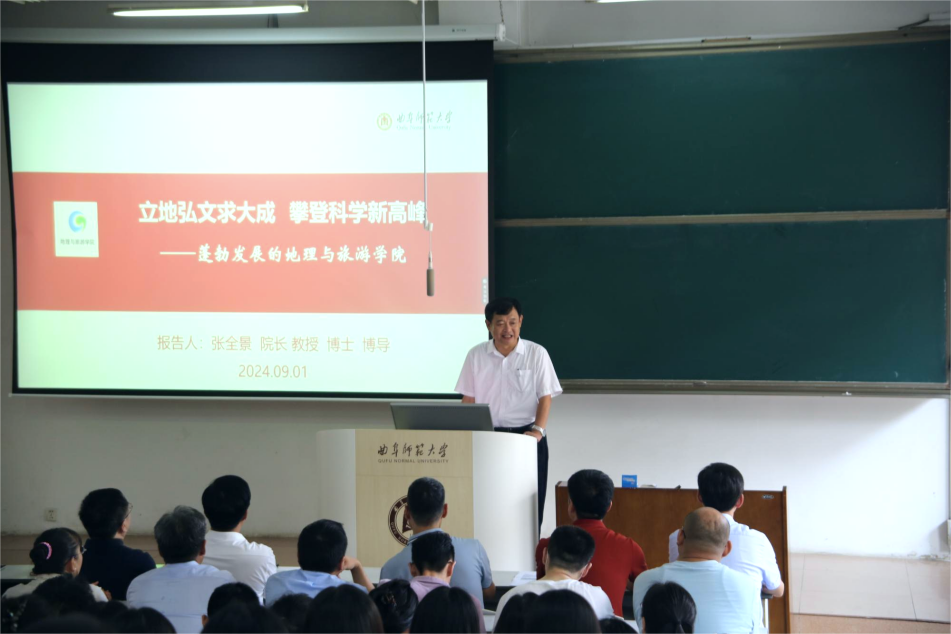 会上,张全景院长以《立地弘文求大成 攀登科学新高峰》为题,为全体新生上了开学第一课。张院长以“圣地学府,儒风海韵——认识我们的曲园”为引子,引领新生们穿越黄金城官网