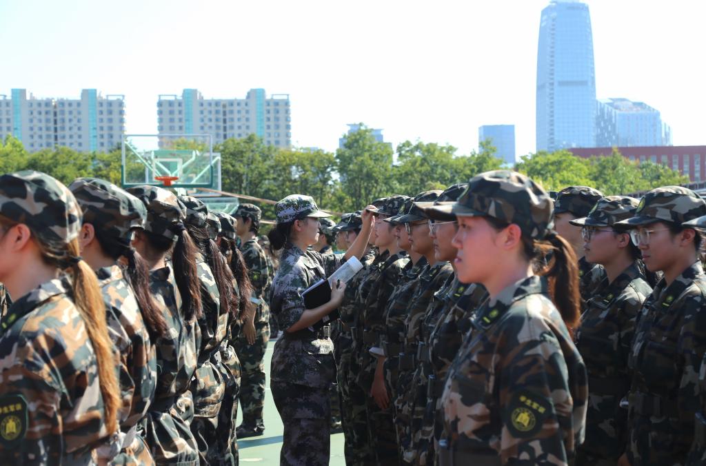 教官检查连队的军容风纪