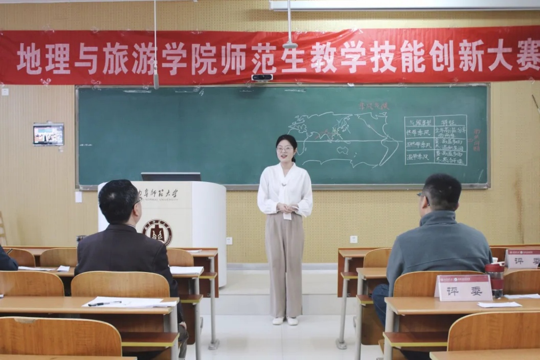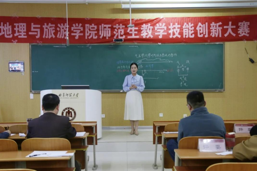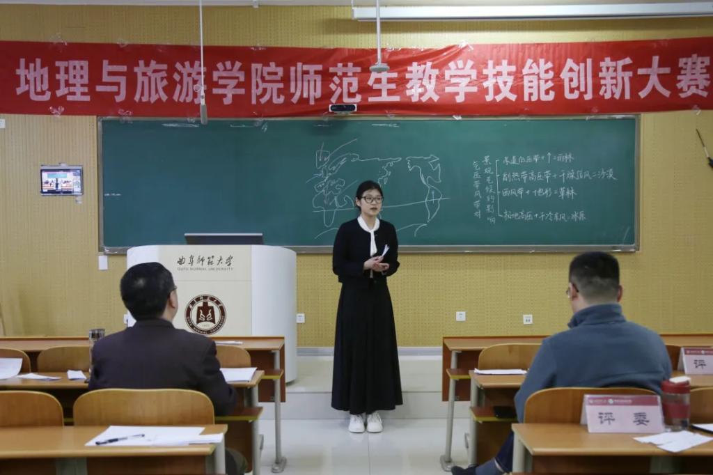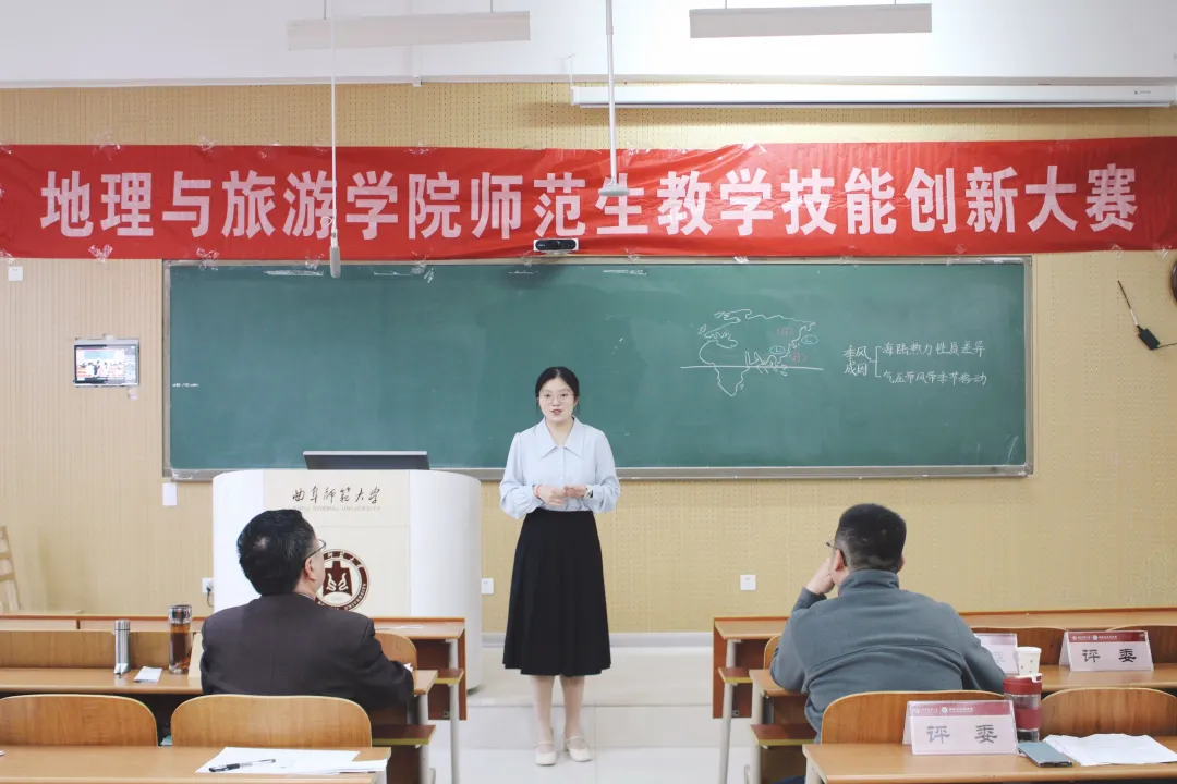 比赛项目分为10分钟模拟授课与现场5分钟答辩两个环节,综合考察选手的教学设计、课堂掌握度及临场发挥能力。模拟授课中,参赛者巧妙运用板书绘图、小组互动讨论等多元化教学手段,将热点元素与山河地貌的学科知识有机融合,打造出趣味性与专业性兼备的课堂。答辩环节,选手们从容应对随机抽取的教学情境题,结合教育理念与自身的实习经验,深入剖析学科核心素养的落实方法,展现出扎实的专业功底与创新的教学思维。