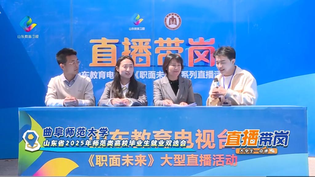 会上,研究生辅导员赵岩和2025届毕业研究生代表受邀参与山东教育电视台《职面未来》大型直播活动。直播中,赵岩紧扣“职业规划与就业指导”主题,详细介绍了黄金城官网