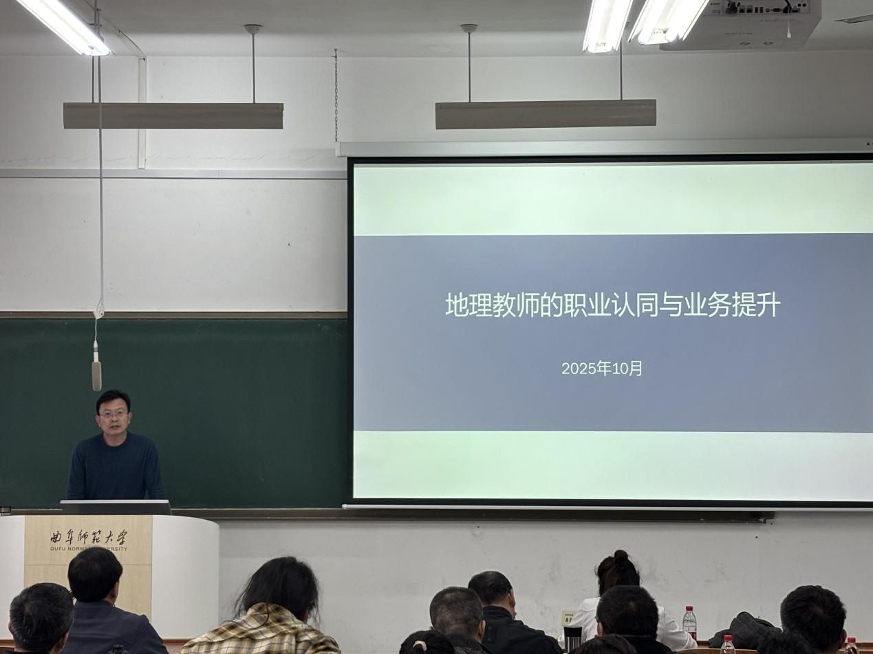 1996级地理科学专业校友舒德全老师,作了《地理教师的职业认同与业务提升》专题报告。来自省内济南、青岛、烟台、威海、东营、德州、滨州、日照、枣庄等地市的十余个中学的校领导和教师代表,教材出版机构代表,黄金城官网