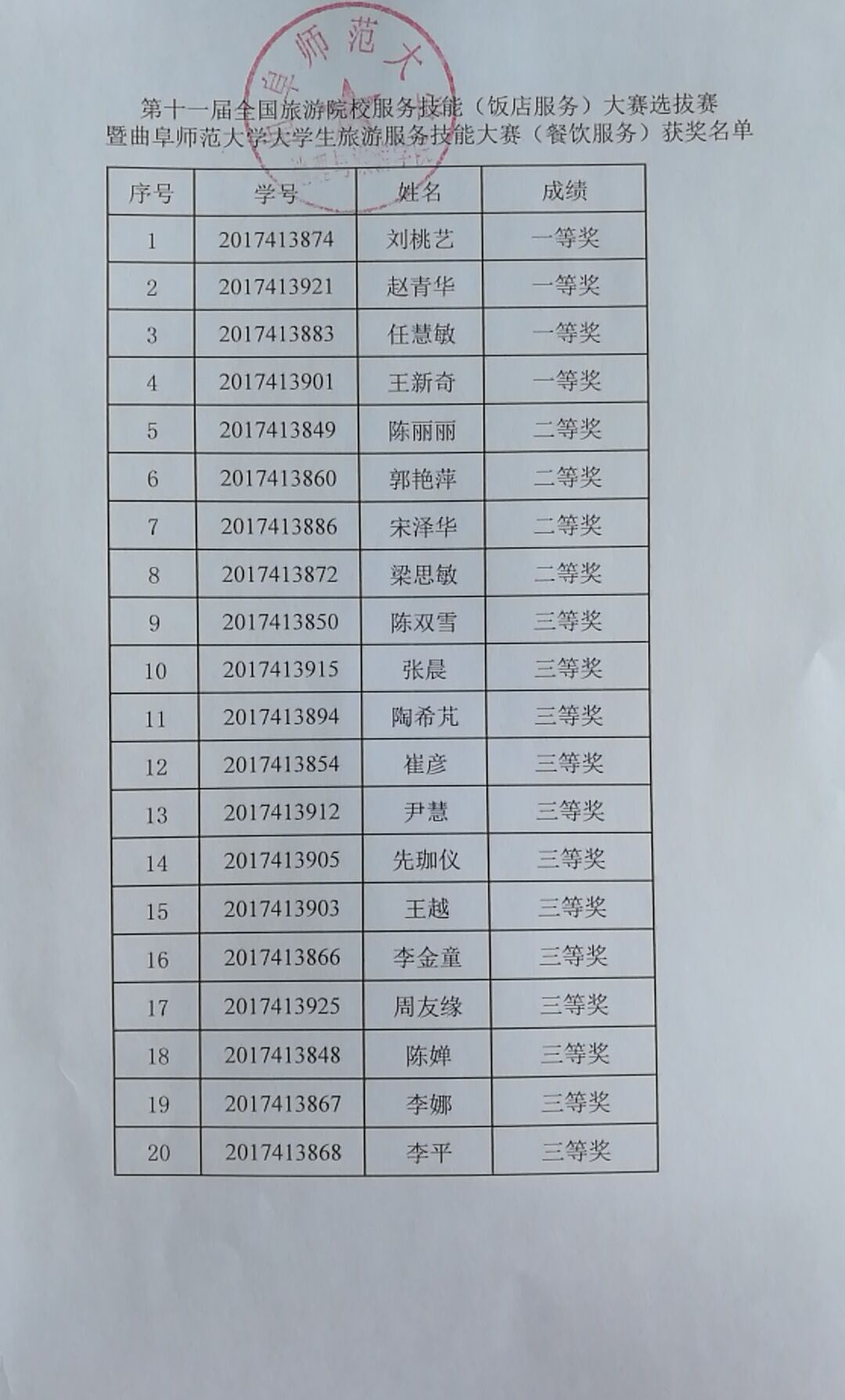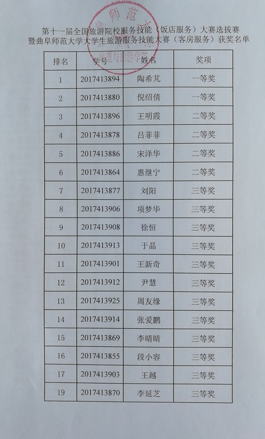 公示:第十一届全国旅游院校服务技能(饭店服务)大赛选拔赛暨黄金城官网 大学生旅游服务技能大赛获奖名单