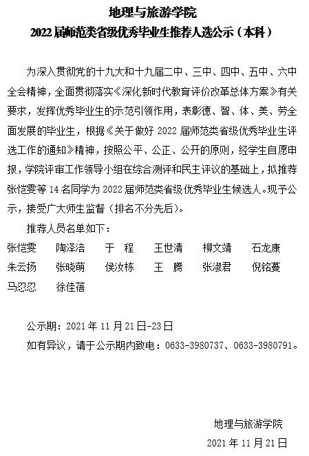 黄金城官网 2022届师范类省级优秀毕业生推荐人选公示(本科)