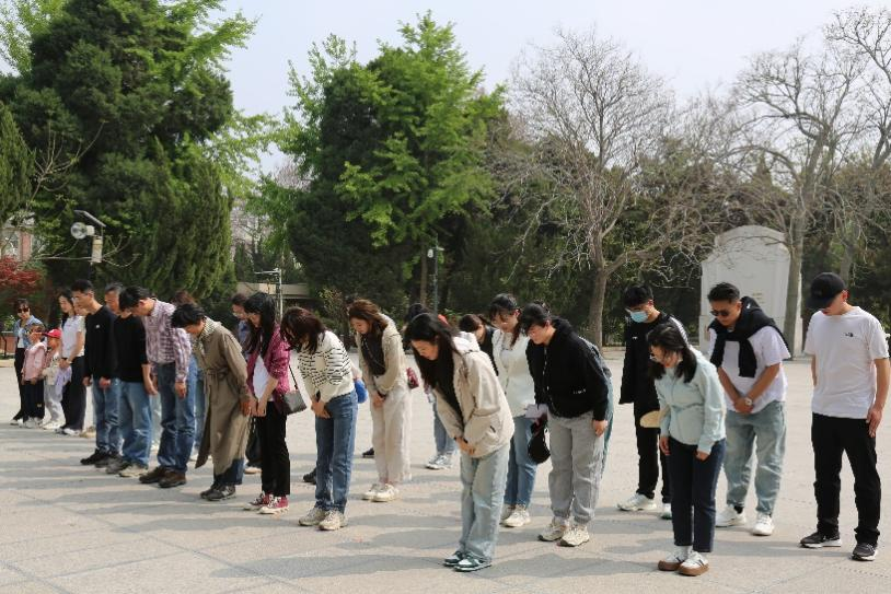 到达焦裕禄纪念园后,全体师生首先向焦裕禄烈士墓三鞠躬,以表达对这位党的好干部深切缅怀和崇高敬意。